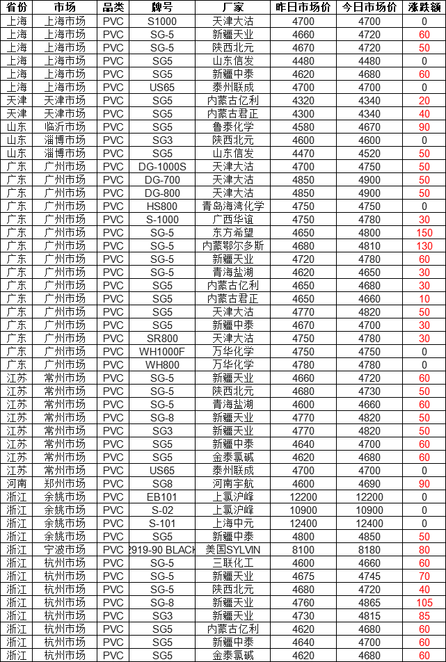 Today's Brief Review of the PVC Market: According to Zhuansu Shijie statistics, as of 4:00 PM on January 7, the PVC market across the country is mostly in the red! 78% of the market quotes have risen, with the highest increase of 150 yuan. Currently,