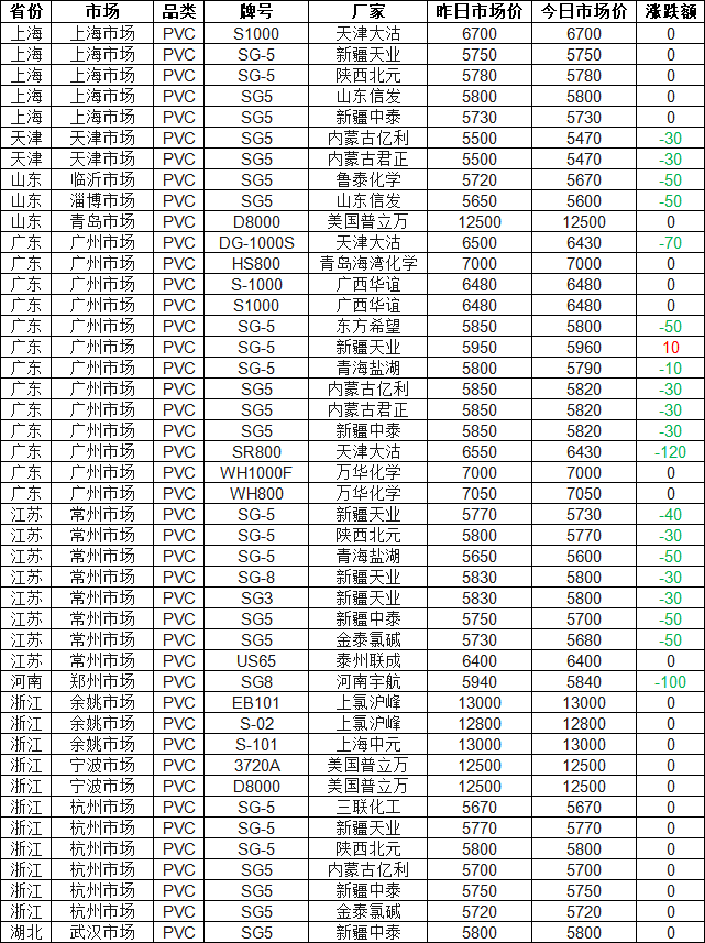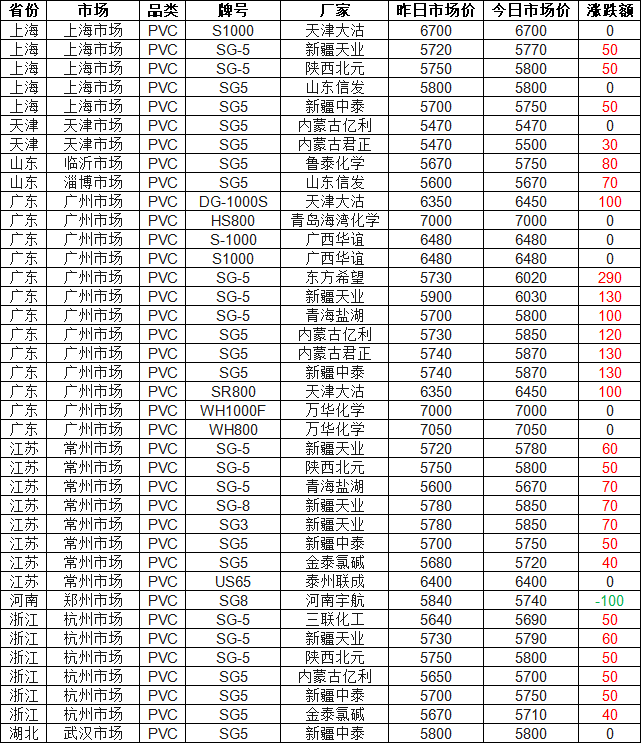 PVC Market Brief: According to Zhuan Su Shi Jie statistics, as of 16:00 on March 19, PVC prices across most regions of China rose. Seventy-one percent of price quotations increased, with the highest increase reaching RMB 290 per ton. Currently, the G