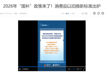 On December 30th, the National Development and Reform Commission and the Ministry of Finance, along with other departments, issued a document clarifying the 2026 vehicle trade-in policy. Compared to 2025, although the upper limit of the "national sub