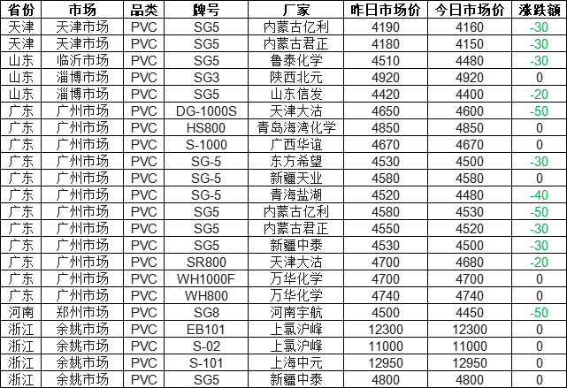 Summary of today's PVC market: As of 16:00 on November 19, according to Zhusuli Shijie statistics, the PVC market across various regions in the country is stable with a slight decrease! 45% of the market quotes remain stable, with the maximum drop be