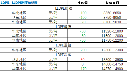 Today's LDPE Market Brief: According to ZhuanSu Vision statistics, on April 16, LLDPE prices declined across all major regions nationwide, while LDPE prices mostly fell with few increases. Specifically: LLDPE film prices dropped by RMB 100/ton in Nor