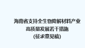 On February 4, 2026, the Department of Industry and Information Technology of Hainan Province issued an announcement to solicit public comments on the "Several Measures of Hainan Province on Supporting the High-Quality Development of the Fully Biodeg