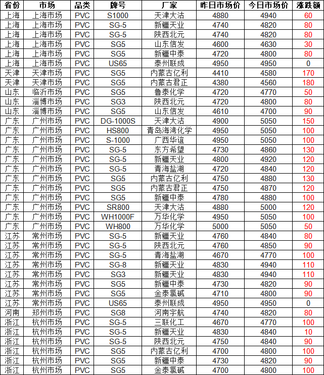 PVC Market Brief Today According to Zhaun Su Shi Jie statistics, as of 4:00 PM on February 2nd, PVC markets in most regions across the country were mostly in the red! 95% of market quotes rose, with the highest increase of 180 yuan. Currently, the S