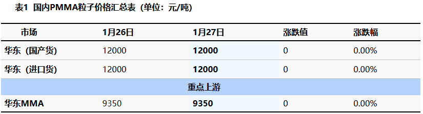 1 Today's Summary ①、 PMMA particles today Price stability 。 ②、 Today, the domestic PMMA particle utilization rate is 61%. 2 Spot Market Overview Based on East China, PMMA particles closed at 12000 today. Yuan/ton Stable