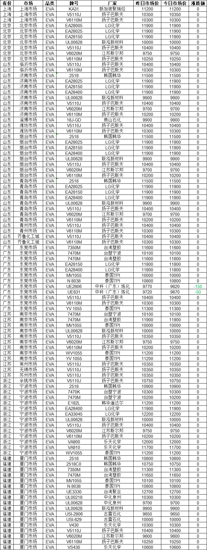 Today's EVA Market Commentary: As of 16:00 on November 13, according to the Specialized Plastics Market Statistics, the EVA market across the country has been stable with a slight decline. 98% of the market prices have remained stable, with the maxim