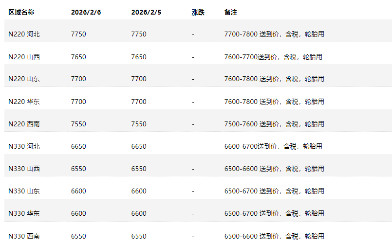 Market Review: On February 6th, the carbon black market was under pressure. The scattered transaction price for N330 was referenced at 6500-6700 RMB/ton delivered, with some individual higher or lower prices also present, and actual prices were subje