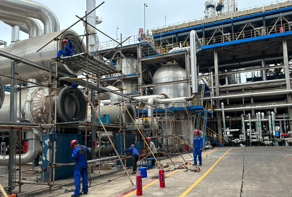 The FDPE unit, undertaken by the Nantong Blue Sea New Materials Polyethylene Project Department of the Fifth Branch, reached a critical milestone as the de-light tower (3200-C-3201) was successfully hoisted into place. As the first of the six towers