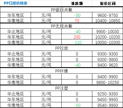 Today's PP Market Briefing According to Zhuan Su Shi Jie statistics, on April 16, prices of polypropylene (PP) in major domestic regions showed fewer increases and more decreases: - PP block copolymer: The East China market declined by RMB 50/ton;