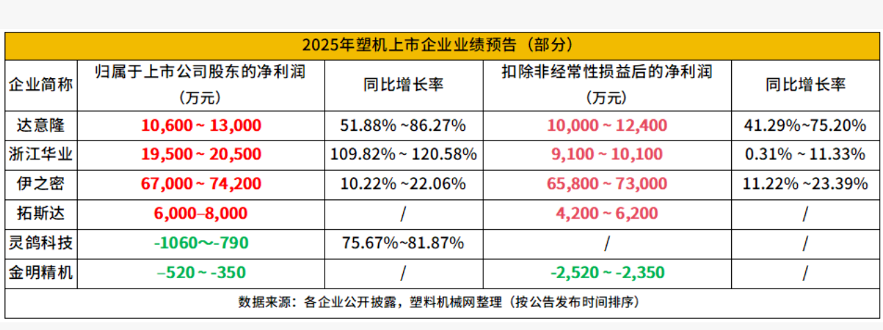 Recently, several domestic listed companies in the plastic machinery industry have released their 2025 annual performance forecasts, covering various sub-sectors such as packaging machinery, plastic molding equipment, and industrial robot accessories