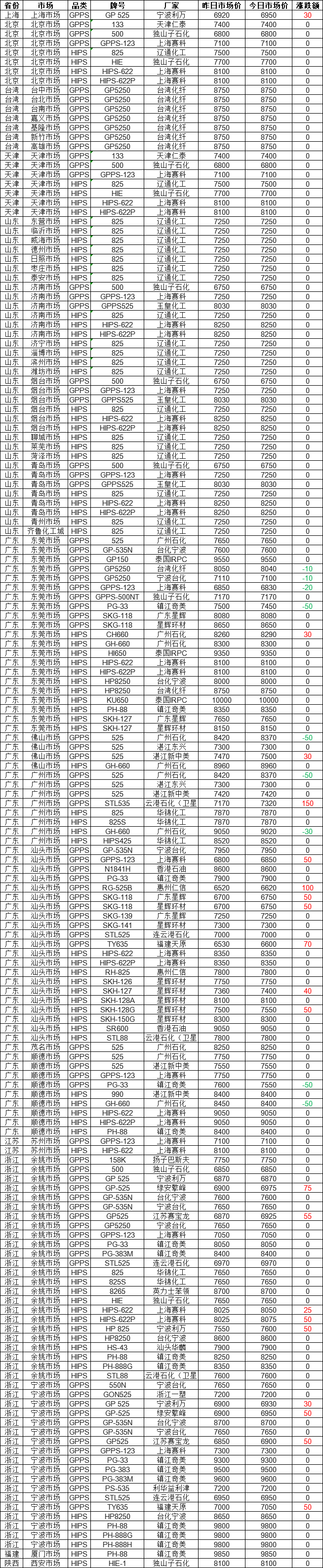 Today's PS Market Brief: As of 16:00 on November 13, according to Zhuansu Shijie statistics, the national PS market is showing steady growth! 83% of the market quotes remain stable, with the highest increase being 150 yuan. Currently, the price of Li