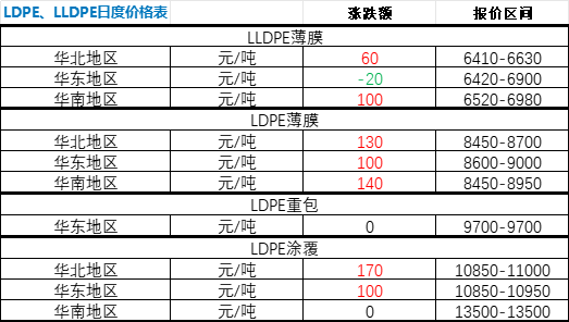 Today's LDPE market commentary: According to Zhuansu Vision Statistics, on January 7th, the LLDPE prices in major regions across the country saw more increases than decreases, while LDPE also experienced more increases than decreases. Specifically: L