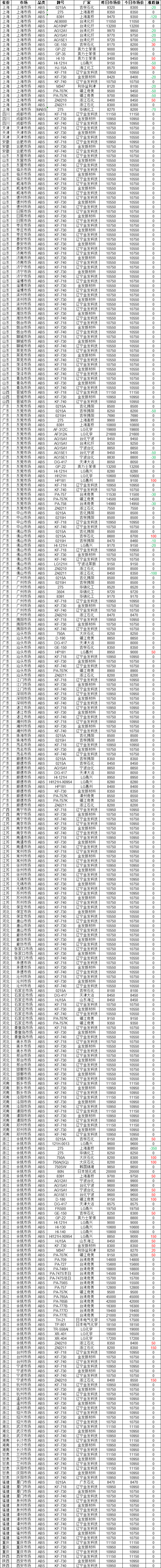Today's ABS Market Commentary: According to Zhuansu Shijie Statistics, as of 16:00 on January 7, the ABS market across the country showed mixed trends! 7% of the market quotes increased, while 6% of the quotes decreased, with the highest increase of