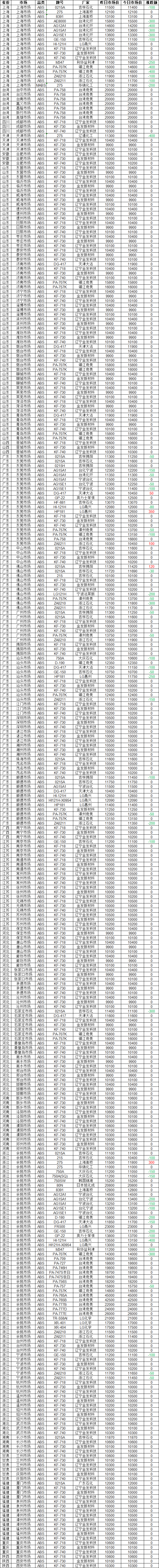 Today’s PS Market Brief According to Zhuan Su World's statistics, as of 4:00 PM on March 19, the PS markets across different regions of the country showed a steady trend with some increases! 51% of the market quotes remained stable, with the highest