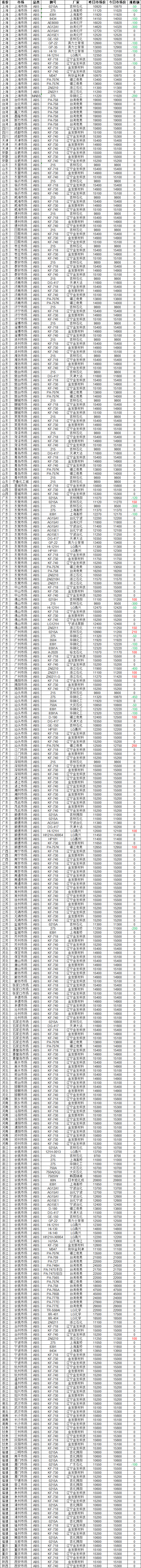 Today's PLA market review: The PLAs quoted in the market today range from 17200 to 20000 yuan, with the median being 17700 yuan. Here are the market quotes for today: